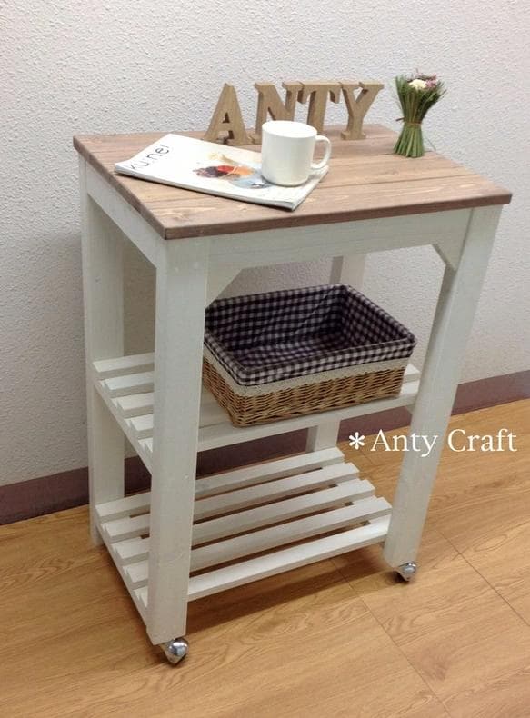 最低価格の 木製キッチンワゴン♦️タイル天板 チェッカー柄♦️ホワイト×ピンク♦️送料込 キッチンワゴン キャスター付き 天板 タイル 木製 天板付き 完成品 キッチンワゴン